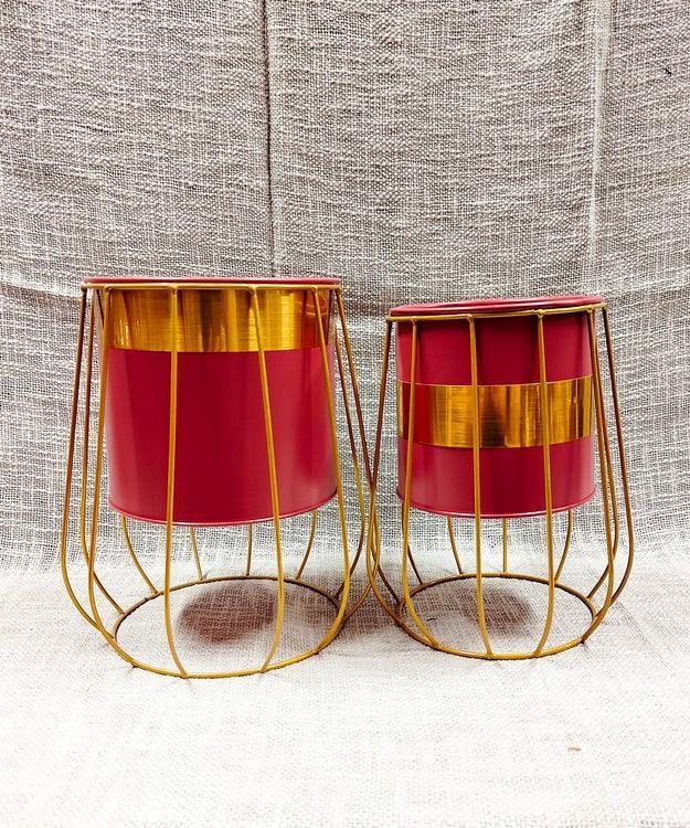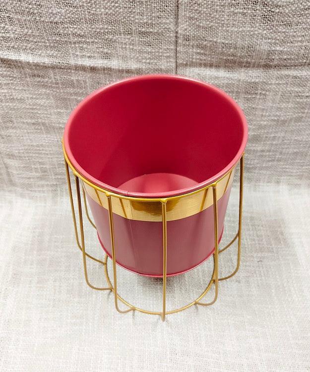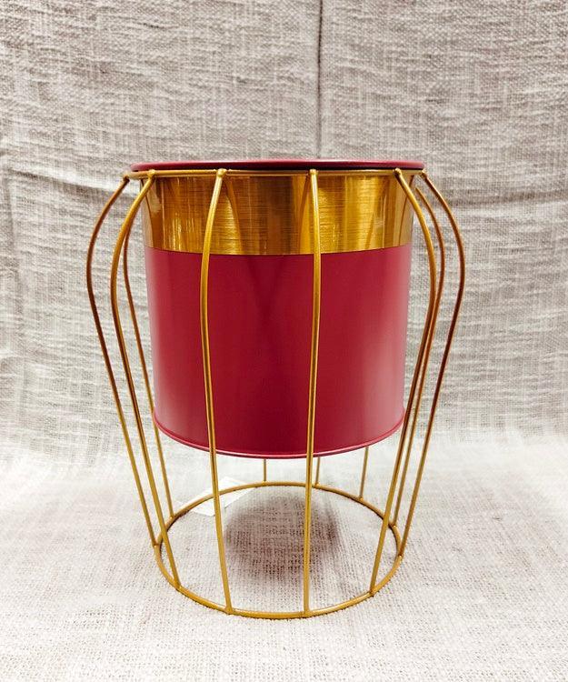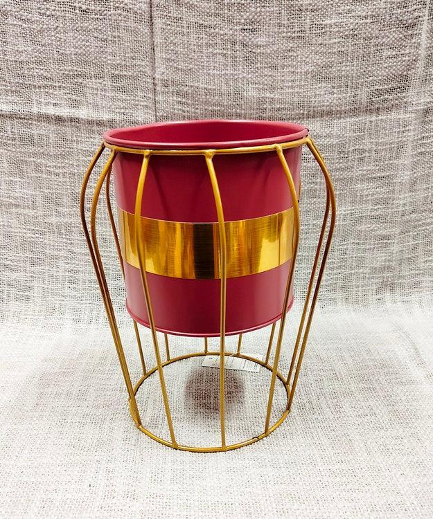 Dodaj nowoczesny akcent do swojego domu dzięki temu designerskiemu kwietnikowi w kolorach burgundowym i złotym. Idealnie nadaje się do eksponowania ulubionych roślin doniczkowych, wprowadzając jednocześnie nutę elegancji i stylu do każdego pomieszczenia. Połączenie matowego burgundu z połyskującym złotem tworzy efektowny kontrast, który przyciąga uwagę, a metalowa rama nadaje mu nowoczesny, industrialny charakter.
